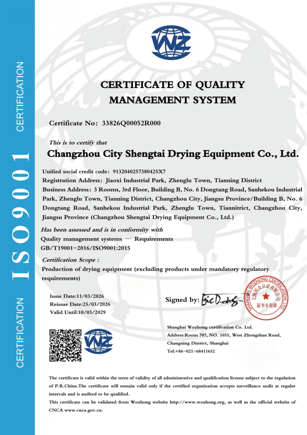 CERTIFICATE OF QUALITY MANAGEMENT SYSTEM